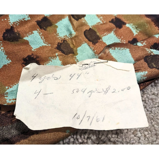 Vintage 60s Uncut Polyester Satin Mod Fabric w/ Receipt Orange Check 5 sq.yds.