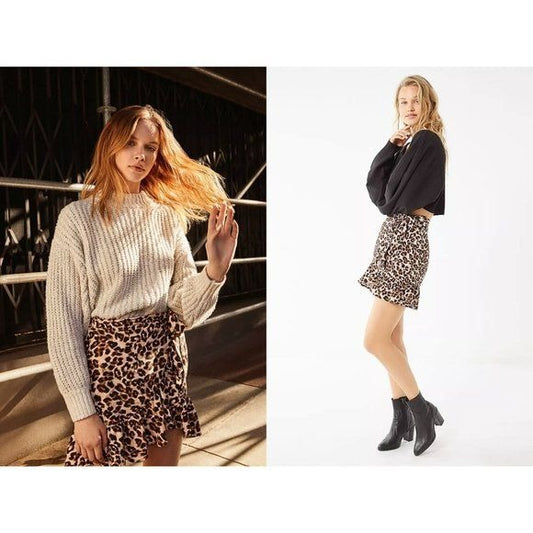 URBAN OUTFITTERS Brown Leopard Print Mini Skirt Tie Ruffle Size L