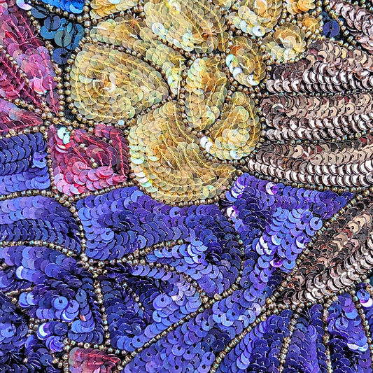 Vtg 80s Jean for JOSEPH LE BON 100% Silk Gold Purple SS Beaded Evening Top Sz L