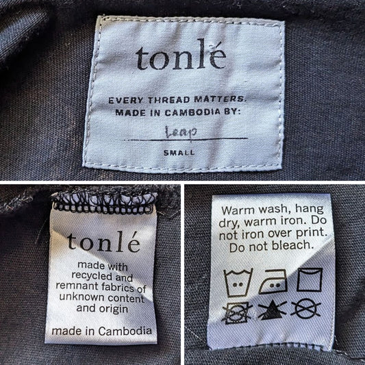 TONLÉ Sustainably Handmade Gray Brown Leaf Boat Neck Relaxed Fit Tee Size S