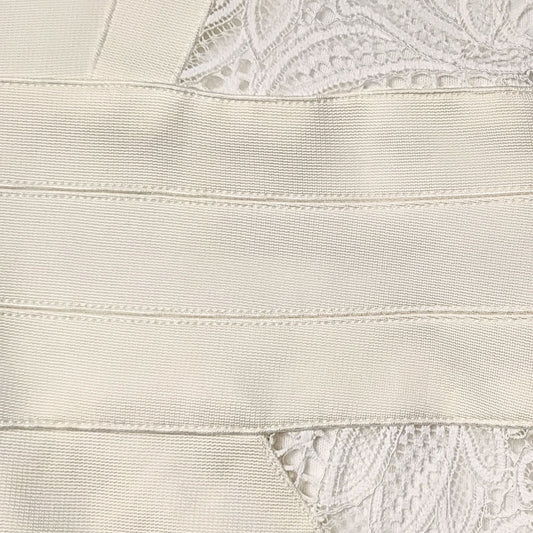 NWOT Vtg Y2K CACHE Ivory Bodycon Bandage Illusion Lace Cutout Mini Dress Size 8
