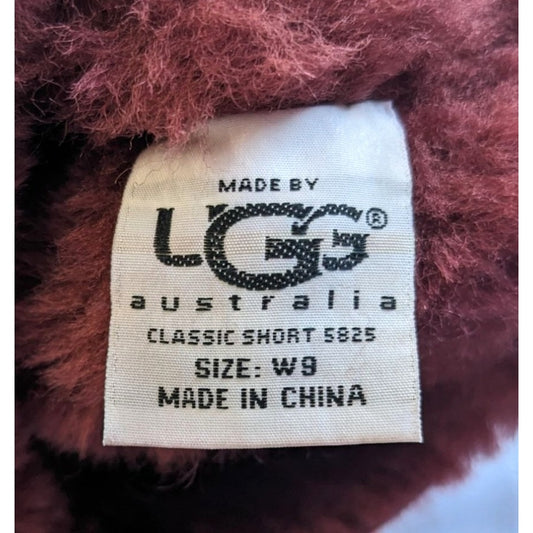 UGG Classic Short II 5825 Burgundy & Tan Leather Round Toe Mid Calf Boots Size 9