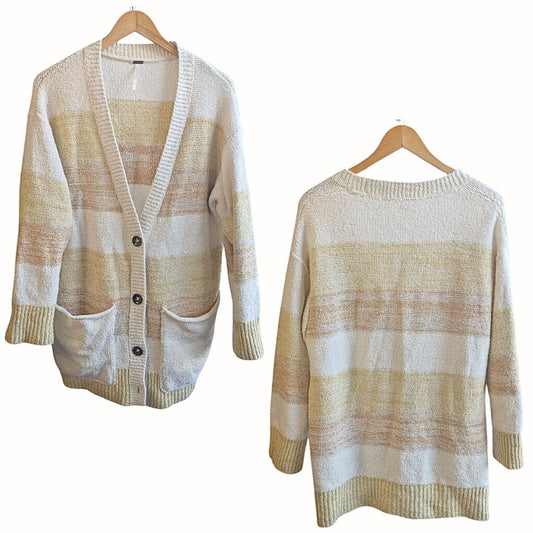 FREE PEOPLE Tan Grains Combo Oversized Cardigan Colorblock with Pockets Size XS