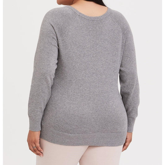 TORRID 100% Cotton Grey & Orange Fox Raglan Sweatshirt Long Sleeve Size 2