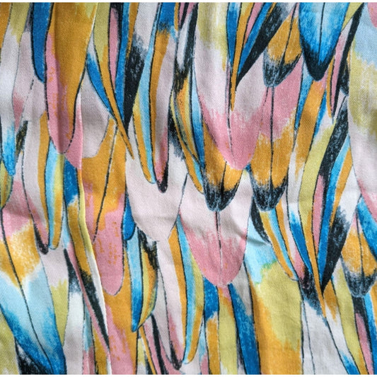 Anthropologie HYPE 100% Silk Yellow Feather Print Summer Boho Mini Dress Size 2