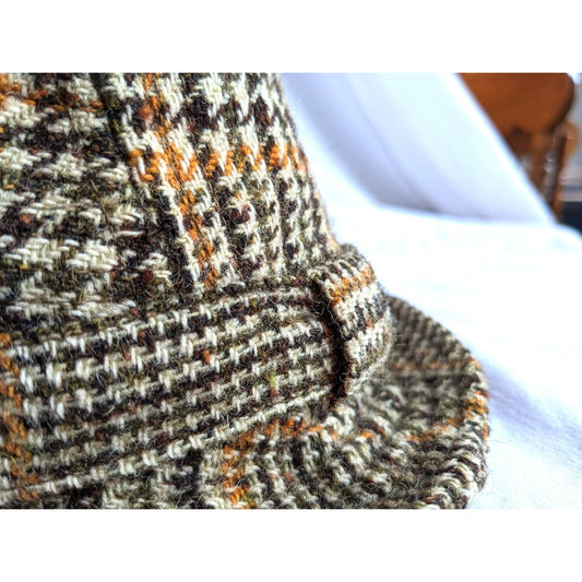 Vintage DONEGAL Brown Tweed Trilby Handwoven Irish Maker-Signed Size 7 1/8 M