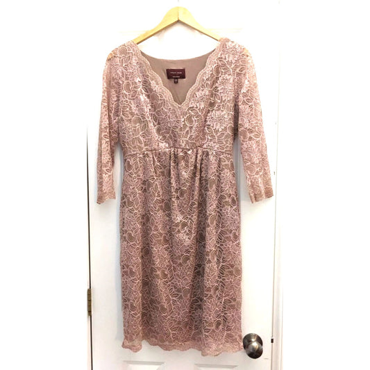 TIFFANY ROSE Rosie Embroidered Lace Midi Dress Pink Rose Gold 3/4 Sleeve Sz 3/10