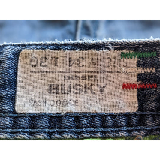 Vintage Y2K DIESEL Men's Busky Jeans 34x30 Straight Leg, Lime Green Interior ~2006