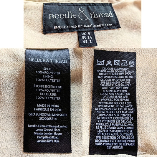 NEEDLE & THREAD Geo Sundown Gold Hand Embellished Mini Skirt Sequins Size 2