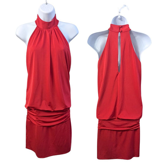Vintage Y2K FREDERICK'S OF HOLLYWOOD Red Satin Halter Bodycon Mini Dress Size S
