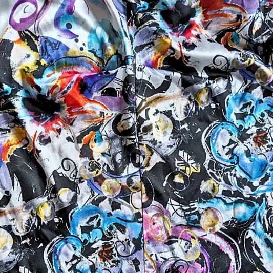Vtg Y2K Sexy Abstract CACHE Silk Satin Print CapSleeve Bodycon Midi Dress Size 4