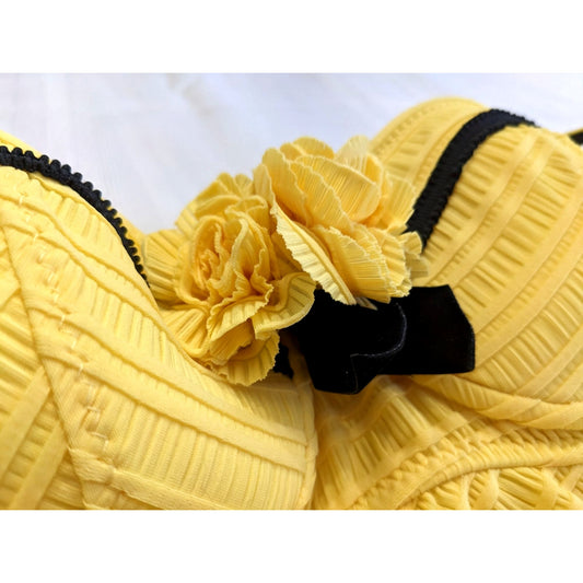 Rare NWOT Vtg Y2K BETSEY JOHNSON Yellow Black Rose Pin-Up Swim Dress Set Size M