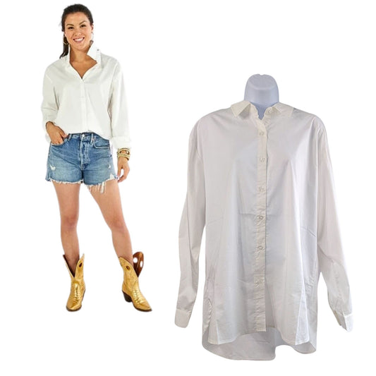 NWT CARYN LAWN White Game Day Orange Embroidered Button-Up Shirt Sporty Fem OS