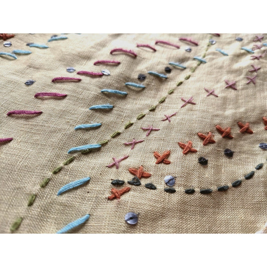 Vintage Y2K EYE Unique Trail Map 100% Linen Skirt Yellow Embroidered Size 8