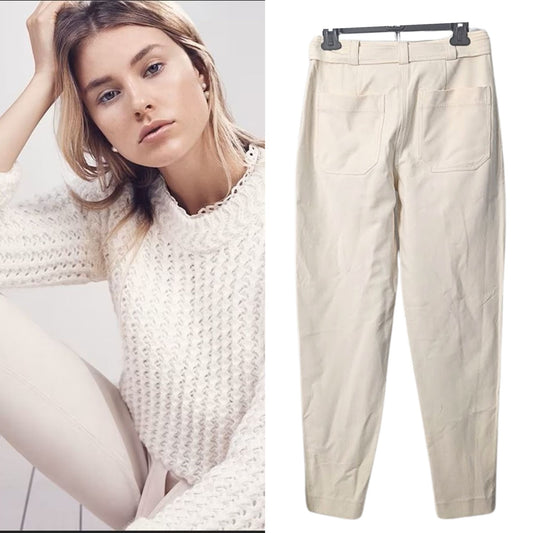 NWT REBECCA TAYLOR Cream High-Rise Straight Belted Suit Pant Size 2 MSRP $365