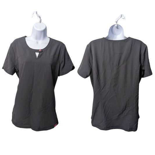 BETSEY JOHNSON Gray Ruched Short Sleeve Scrubs Shirt Keyhole w/Charm Size M