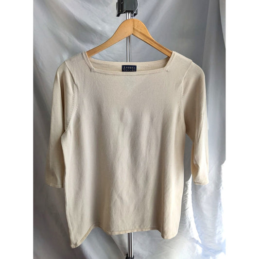 Vintage 70s/80s ANDREA VICCARO Ivory 75% Silk 3/4 Sleeve Sweater Size 1X