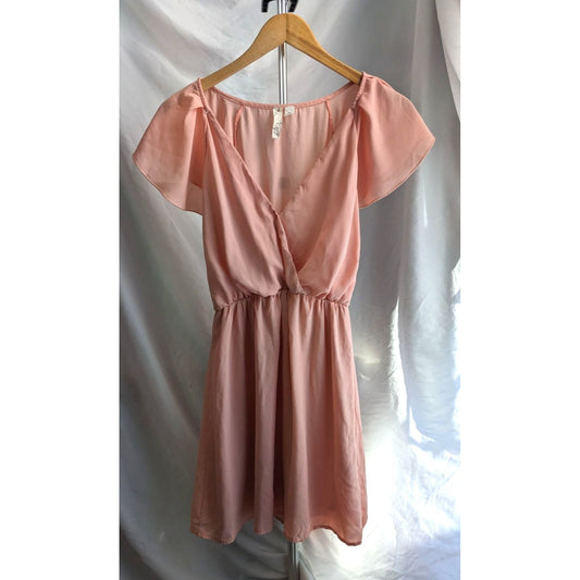 Anthropologie WESTON WEAR Spring Peach Blouson Mini Dress Faux Wrap Size M