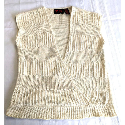 Vintage 80s T.Q. Angora Lambs Wool Blend Ivory Knit Sweater Vest Lagenlook Sz S