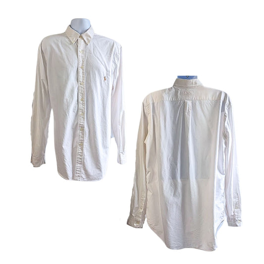 Vtg 90s RALPH LAUREN Classic Fit 100% Cotton White Button Down Dress Shirt Sz LT