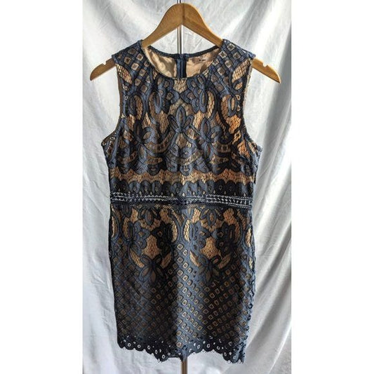 NWOT Francesca's MI AMI Melania Gray-Blue Lace Dress w/ Tan Lining Cutout Size M