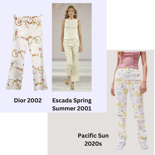 Vintage Y2K ESCADA Coastal Coquette White French Pastel Print Pants Size 44/14