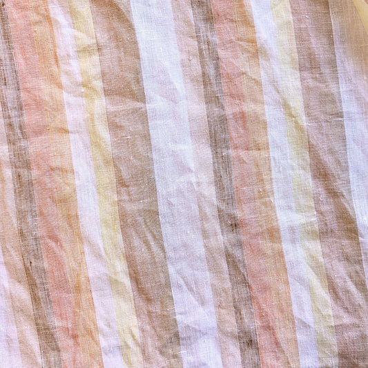 LISA MARIE FERNANDEZ Peach Stripe 100% Linen Gauze BeltedMidi Shirtdress Sz IV/L