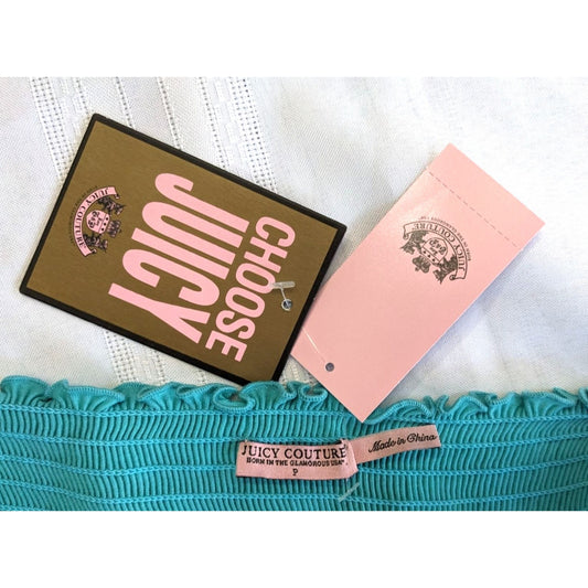 NWT Vintage Y2K JUICY COUTURE Turquoise Blue Grotto Modal Pom Pom Halter Size SP