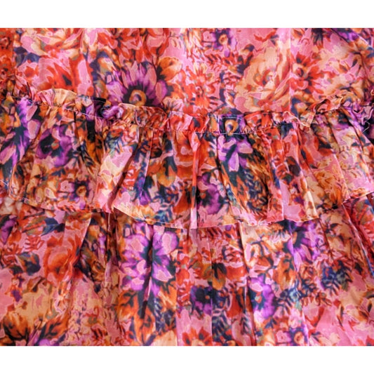 UNGARO Tara Floral Silk Blend Mini Dress PinkPunch Multi w/Beaded Butterfly Sz L