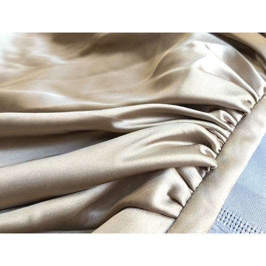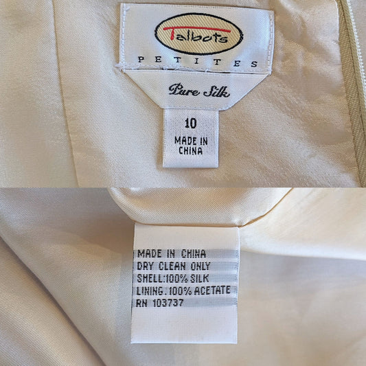 Vintage 90s TALBOTS Sandy Gold Pure Silk Minimalist Prom Gown Square Neck Sz 10P