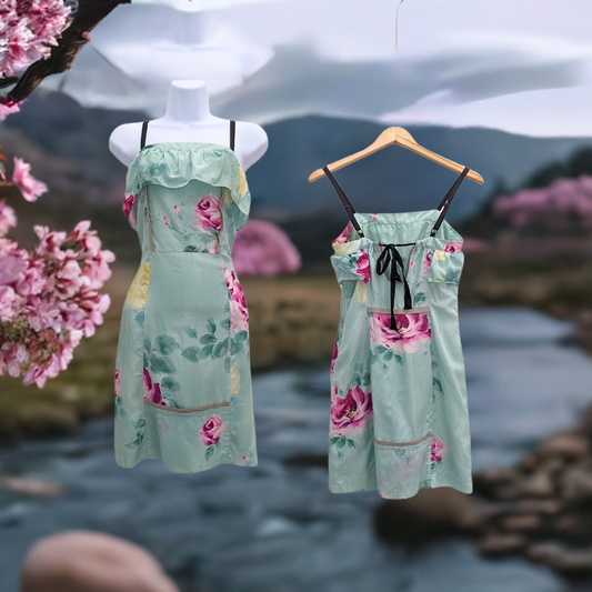Bubbly 2010 JUICY COUTURE Silk Cotton Mint & Violet Rose Print Mini Dress Size 2