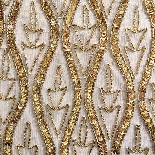 Vtg 80s ANUJAN CREATIONS 100% Silk Ivory Gold Beaded Art Deco Zig Zag Top Size M