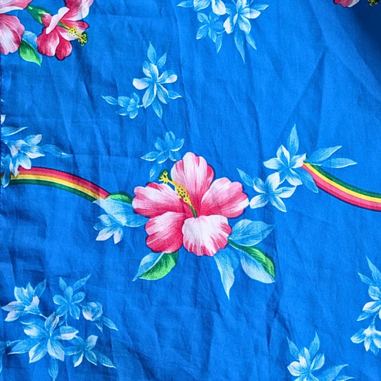 Vintage 60s ISLAND FASHIONS Blue Floral Rainbow Hawaiian Midi MuuMuu Dress Sz 10