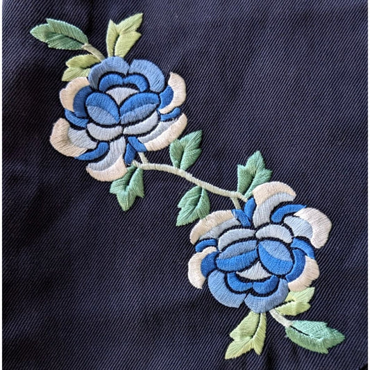 VILSHENKO Couture NavyBlue Floral Embroidery Cotton Gabardine Midi Skirt Sz 8/10