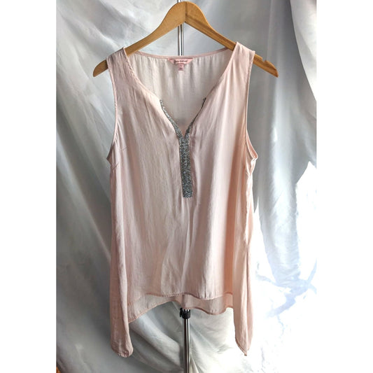 JUICY COUTURE Baby Pink Diamante Tank Tunic Sleeveless Rhinestones Size L