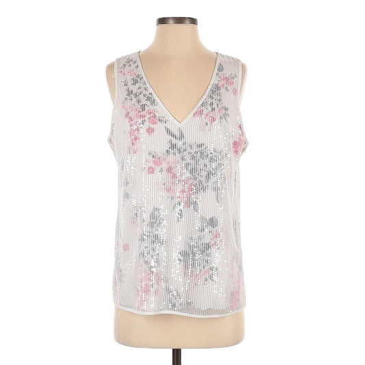 WHITE HOUSE BLACK MARKET White & Pink Floral Sequin Overlay Tank Coquette Size L