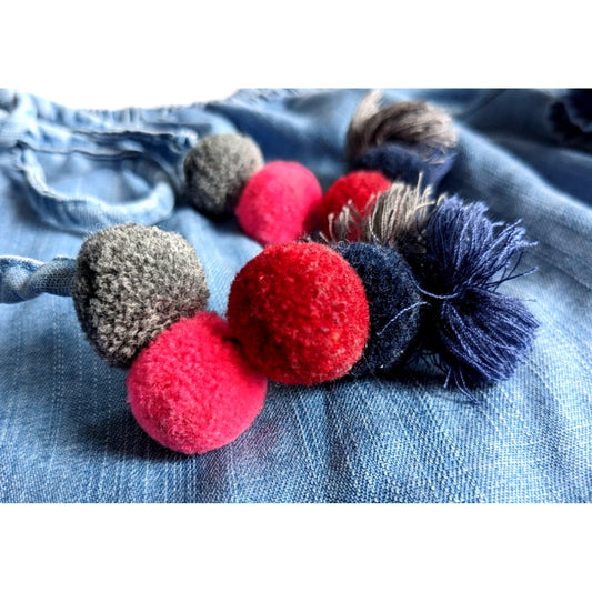 Francesa's BLUE RAIN 100% Tencel Chambray Off-Shoulder Crop Top Boho Poms Size M