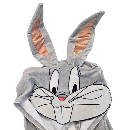 LOONEY TUNES Bugs Bunny Gray White Hooded Mask Onesie Costume Size Kids L/XL