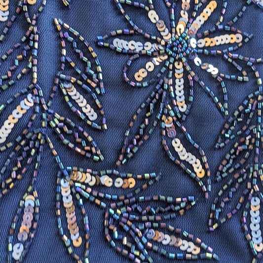 NWT PISARRO NIGHTS Slate Navy Beaded Mesh Mock Two-Piece Sequined Gown Size 12