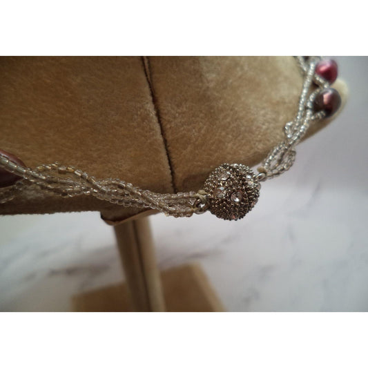 Soft Pink and Purple Beaded Triple Strand Necklace with Silver Magnetic Clasp