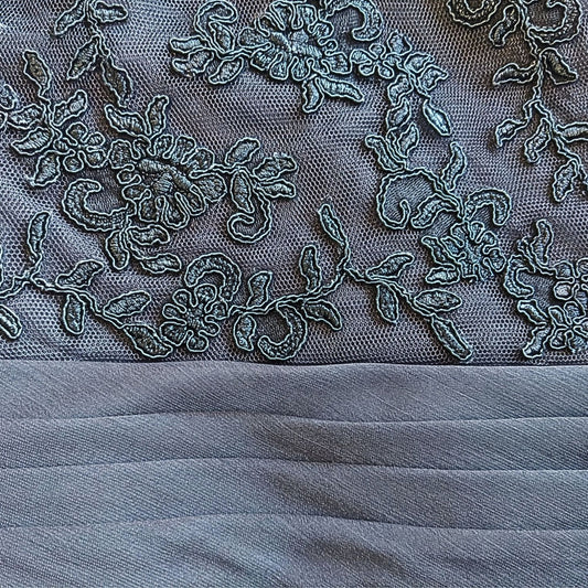 JADE BY JASMINE Iron Gray Alencon Lace Illusion Bodice MOB Gown J165012X Size 18
