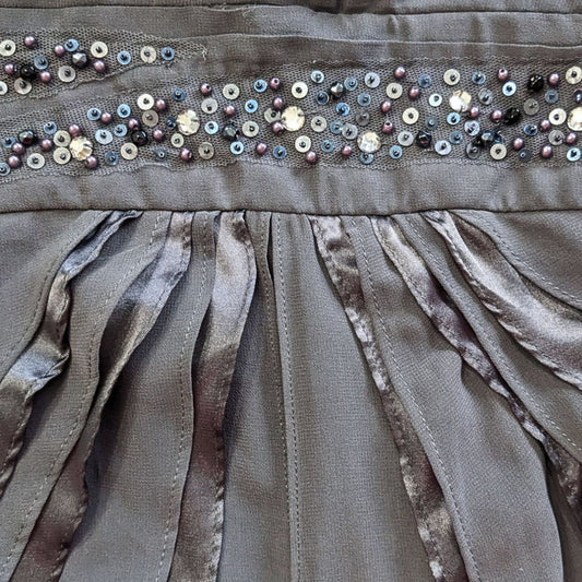 MIDNIGHT VELVET Nicoletta Smoky Gray Sequin Chiffon Satin Waterfall Gown Size 16