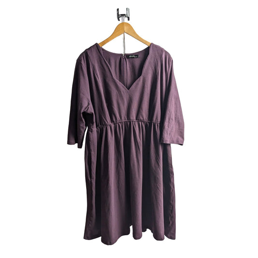 SHATKI Plum Purple Cotton Knit Sweetheart Empire Dress w/ Pockets Size 2X/22W