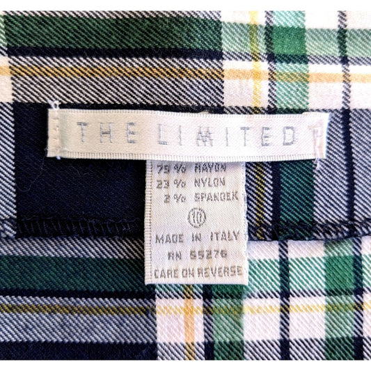 Vintage 80s THE LIMITED Old Money Navy Plaid High Rise Skirt Made in Italy Sz 10