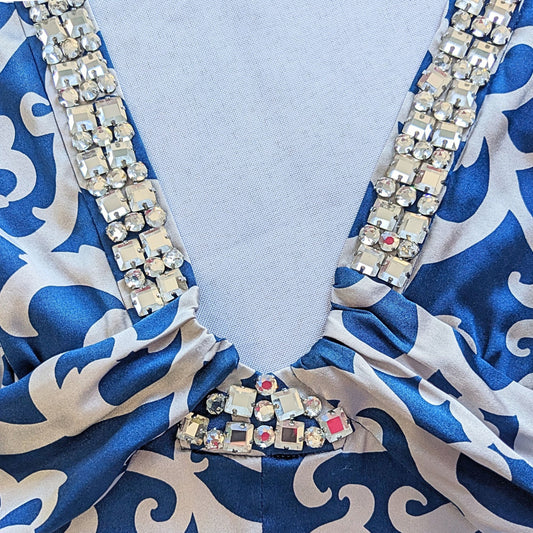 NWT Vtg Y2K BEBE Royal Blue & Silver Satin Rhinestone Halter Maxi Prom Gown Sz S