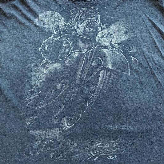Vintage Y2K LIQUID BLUE Bulldog Motorcycle Moon SS Tee Men's Size 8X