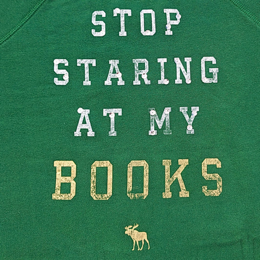 Vtg Y2K 2004 ABERCROMBIE & FITCH Green Stop Staring at My Books McBling Sweatshirt Sz S