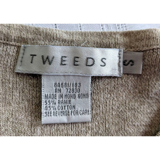 Vintage 90s TWEEDS Tan Short Sleeve Sweater Dress A-Line Empire Sustainable Sz S