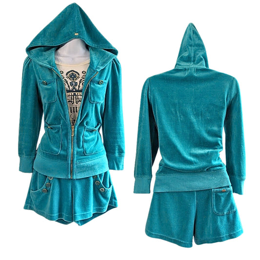 Vtg Y2k JUICY COUTURE 4pc Teal Gold Polly Pocket Velour Matching Shorts Set Sz S