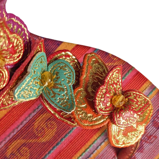 Vtg Y2K Couture DONALD J PLINER Metallic Southwest Butterfly Silk Kitten Heels 8